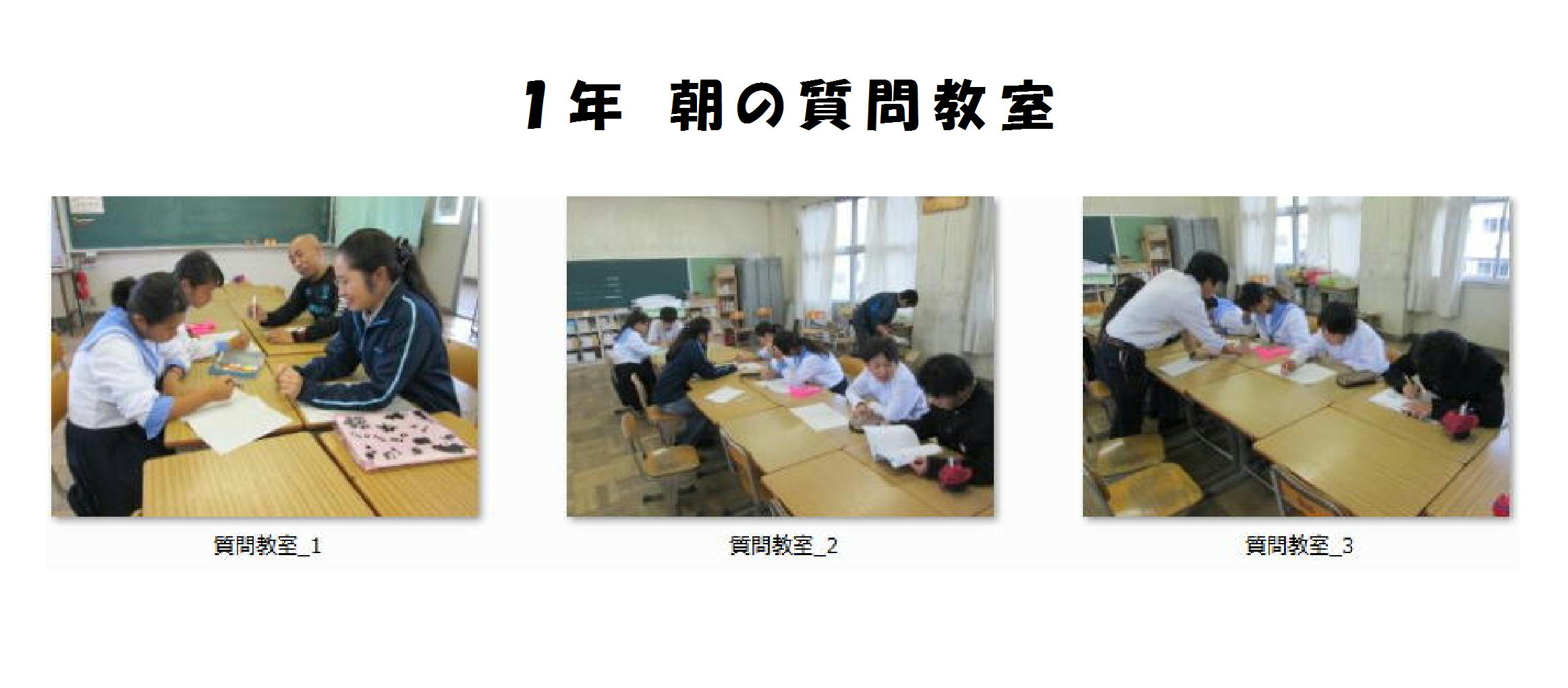 1年生もテスト前の学習会等を行っています。放課後に加え朝は質問教室を行い、各クラスでも自主学習会を行っています。