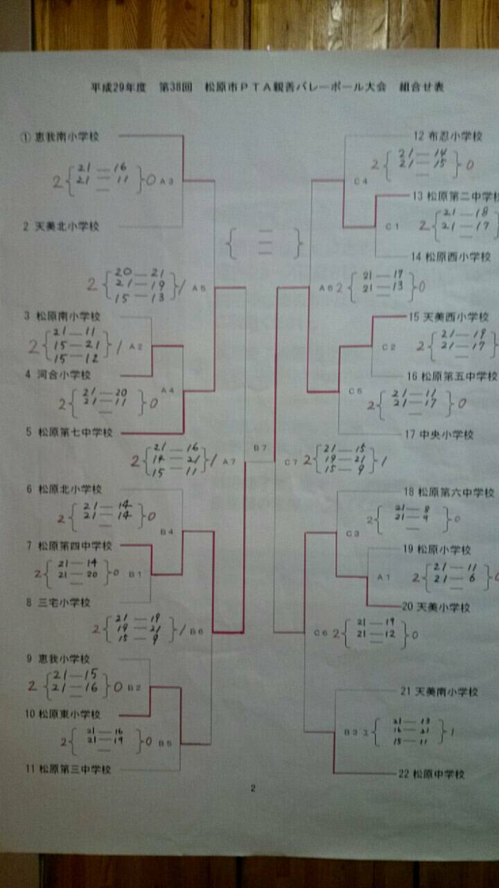 今日は、松原市のPTAバレーボール大会が行われました。二中は、みなさんの活躍でベスト8でした。優勝は天美西小学校、準優勝は四中でした。