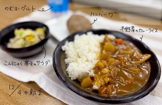 今日は冬野菜のカレーライスでした。れんこんが入っていて美味しかったです。