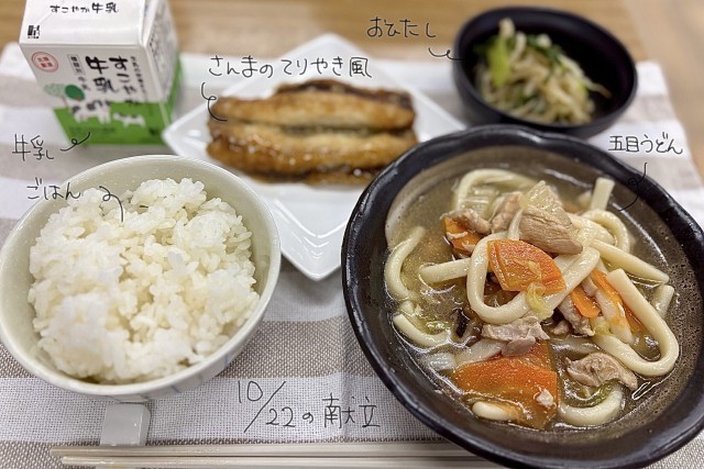 昨日はうどんでした。寒かったので、体があたたまる給食でした。