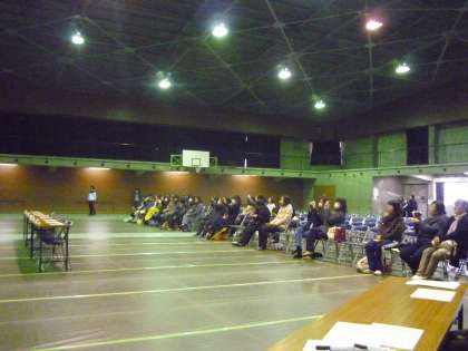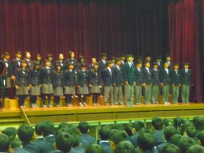 各学年全体合唱につづき、各クラス選択曲を合唱しました。全体合唱では、さすがに二年生は迫力が出ていました。選択曲では、金賞は一年生4組、二年生4組、銀賞は、一年生1組、二年生3組でした。短い練習期間でしたが、どのクラスも頑張りを見せてくれました。保護者の皆様には、お忙しい中参観いただきありがとうございました。
