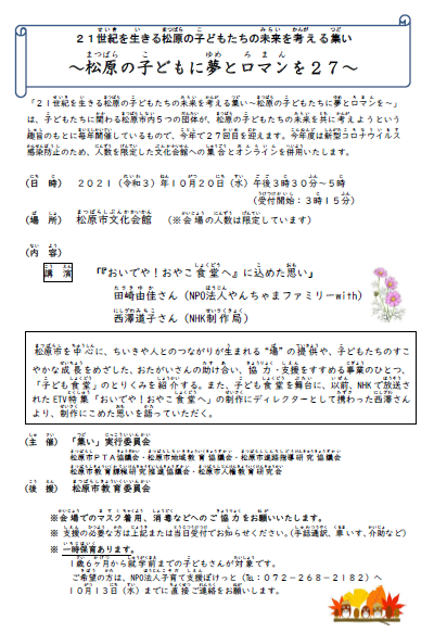 ご案内チラシ→【ご案内】21世紀を生きる松原の子どもたちの未来を考える集い