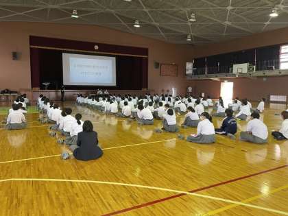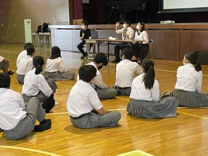 3年生は中間テストを直前に控え、高校の先生と高校生の先輩からの聞き取り学習を行いました。みんな真剣に聞き入っていました。