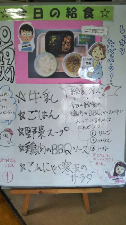 今日の給食の鶏肉のBBQソースの中に入っているものはどれでしょう?