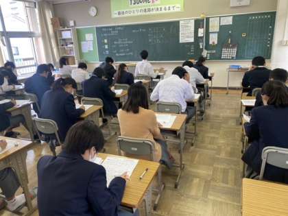 1.2年生に1週間遅れての中間テストが3年生で始まりました。体育祭、修学旅行も終わりいよいよ本気モードの始まりです。3年生への熱いエールをお願いします。頑張れ3年生!