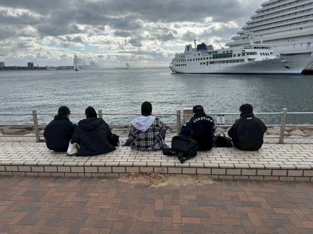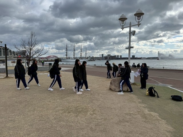 寒いですが天気も良く班ごとに神戸の南京町、防災センター、メモリアルパークなどをまわっています。