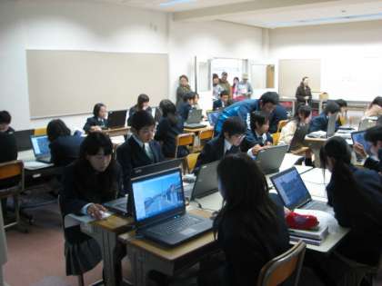 1年生の社会科ではパソコン教室で地理の授業おこないました。グーグルアースを使って世界や身近なところの画像をみました。 -