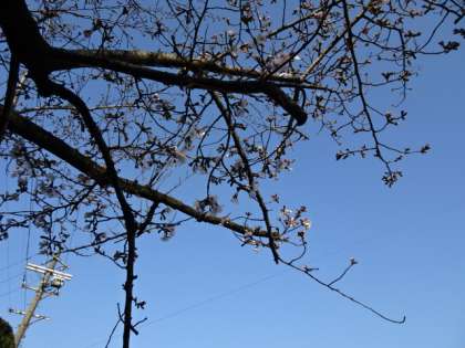 自転車置き場横の桜が開花しました。まだ、3分咲きまで行きませんが、春が来たと実感しますね。