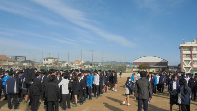 本日6時間目に地震を想定した避難訓練を実施しました。地震発生の放送が入り、机の下に頭を隠す。また、グラウンドでは、建物から離れ体を低くする。体を守る行動をとった後に避難をおこないました。