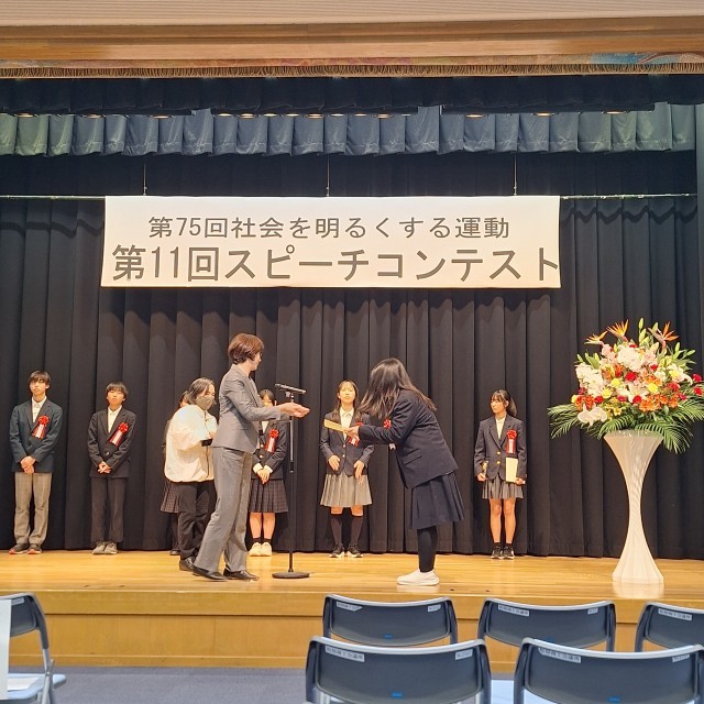 第75回「社会を明るくする運動」松原地区推進委員会主催の小学生・中学生による「第11回スピーチコンテスト」が開催されました。松原第四中学校からは、代表として1年生が「未来への架け橋」をテーマにスピーチをしました。