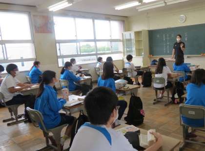 8:30登校、3時間の授業後に給食を食べて下校します。