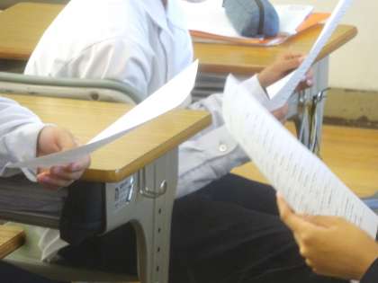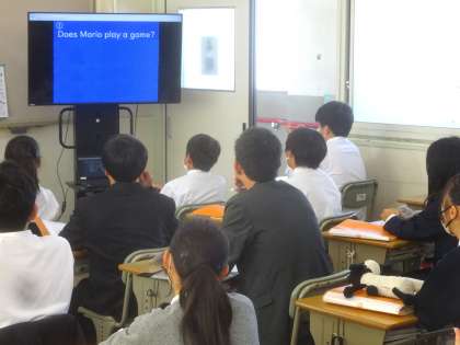Warm Up 〜What is this〜 からのペア学習、Quick Q&A でのコミュニケーションを経て、授業は導入・展開へと導かれます。今日は松原市内の先生たちにも来ていただき、たくさんの応援を受け、授業公開が行われました。