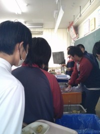 3年生の給食の風景です。みんなで協力しながら手際よく配膳するので、とても早く食べ...