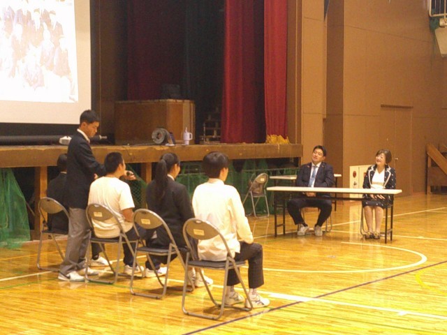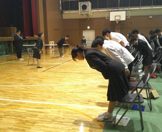 3年生は、午後から興国高校の校長先生、先生1名、学生3名に来校していただき、マナー講座をしていただきました。あいさつの仕方や立ち方、座り方、面接の対応の仕方などさまざまな内容を実技指導も含めてていねいに教えていただきました。マナー講座の始めと終わりでは、立ち方や座り方など雰囲気が大きく変わり、教えていただいた内容をしっかりと身に着けることができました。