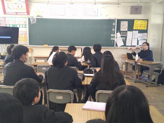 3年生のアイデアミーティングで、松原市内4社の方々にお越しいただきました。講師の方の前で自分たちのアイデアを発表し、アドバイスなどをたくさんいただきました。