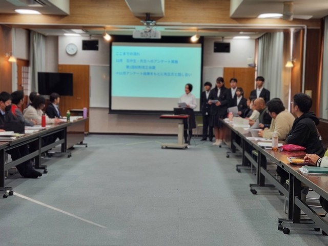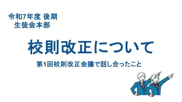 先生方を対象に、生徒会より校則改正に向けての提案がありました。「自律・自ら判断できる五中生に」というコンセプトのもと、生徒や先生へアンケートを取り、みんなの意見を聞きながらていねいに進めてくれています。