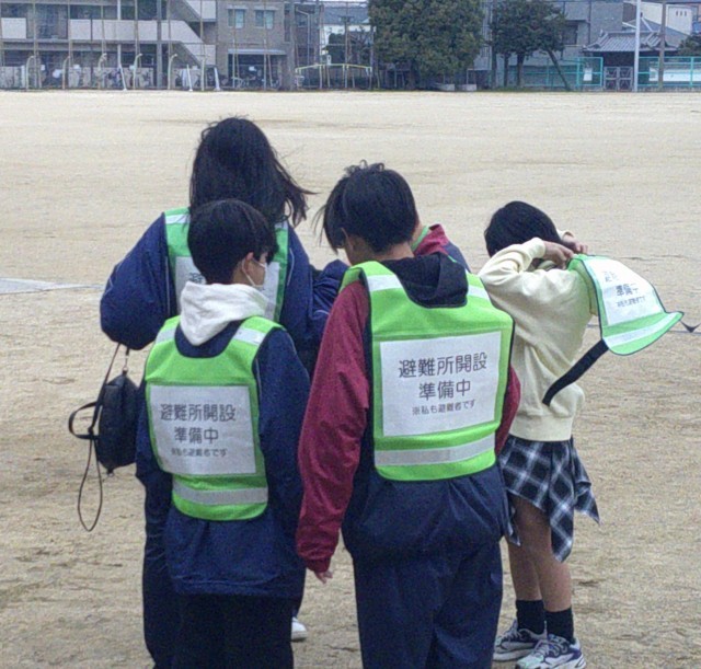 いつ発生するかわからない大規模地震に備えるための防災訓練が行われ、市内小中学校を会場にした避難訓練が行われました。五中生もGMAT(五中校区を 守る アシスタント チーム)と有志が参加しました。