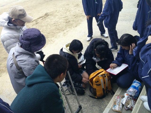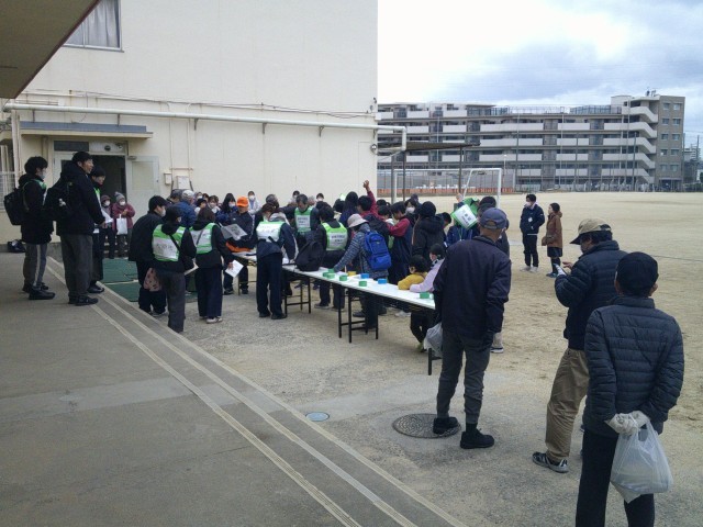 市役所の方に支えていただきながら、地域の方々と一緒に避難所運営のお手伝いをしました。全員でのシェイクアウト訓練後、避難してこられた方と一緒に、ゾーニングマップの確認や教室への誘導、防災バックの中身の確認などをしました。いざという時のために、自ら行動できる力を養いました。