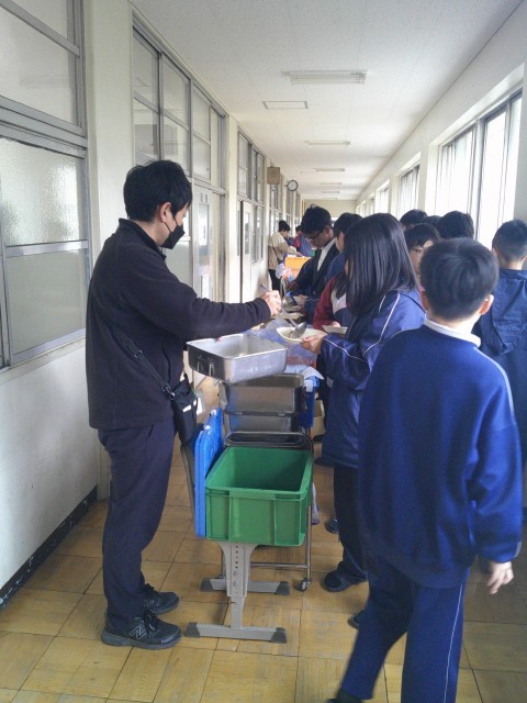 いつも配膳員さんが、五中生全員の給食の配膳準備と片付けをしてくれています。各クラスから配膳室に給食を取りに行きます。そして、教室で分担、配膳し、おいしくいただいています。いつも見えないところで給食配膳準備などをしていただき、ありがとうございます。給食を取りに行く時や返却の時にいつも優しく声をかけていただき、ありがとうございます。