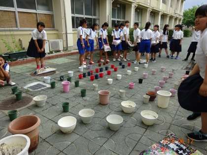 そして次の日に、2年生で、ボランティア42名が集まって、六中、七中、絆プロジェクトからもらった種をそれぞれ植えました。
