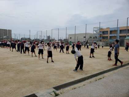 保体委員のみなさんが声をかけて整列し、元気よく体操をしてくれました。