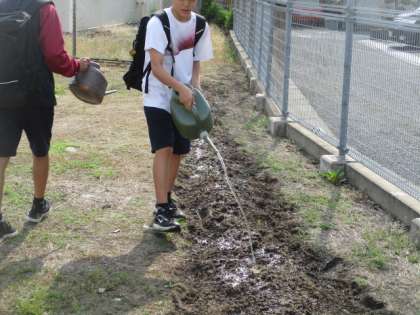 早朝より「はるかのひまわり」の水やりをしてくれています。