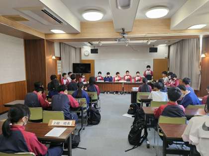 班長や学級委員、各委員会の委員長、生徒会役員で話し合い、修学旅行が成功するように、それぞれの想いを伝えあいました。