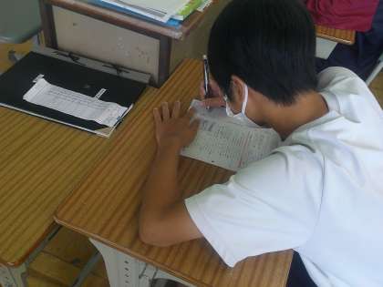 単元テストの様子。一年間、どのように学ぶかを考え続けた結果、2年生では、単元テスト前に自ら学ぶ様子が見られました。そうするとやっぱり点数が上がってきたようです。本人たちは大喜び。また、勉強したくなるといいですね。