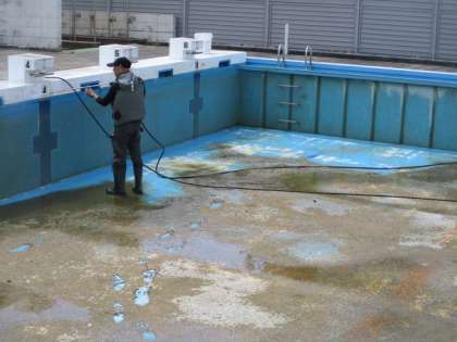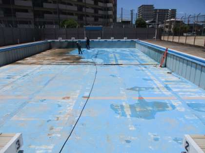 業者の方に来ていただきプール清掃をしてもらいました。