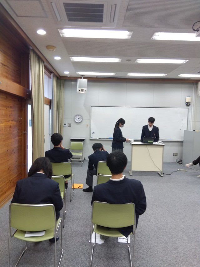 当時のことを知らせる報道番組の一部を視聴し、生徒会が準備したプレゼンが行われました。