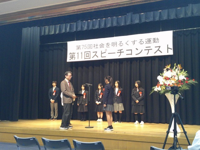 六中からは、社会を明るくする作文を書いた1年生堀川さんが代表としてスピーチしました。