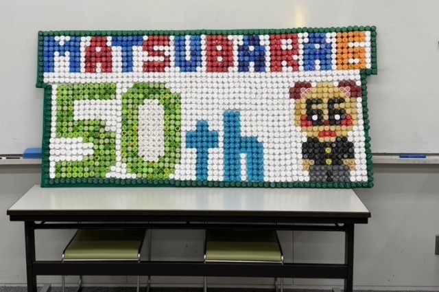 その中で、青空学級が作成したペットボトルキャップアートを紹介してくれました。