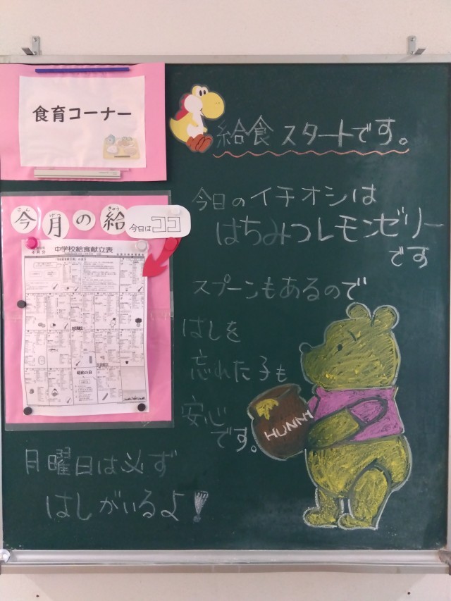 牛乳、ご飯、キャベツの甘味噌炒め、ちくわの天ぷら、はちみつレモンゼリーでした。
