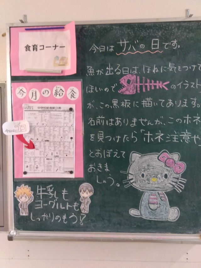 今日の献立は、飲むヨーグルト、ご飯、鶏すき、鯖の塩焼き、きゅうりのごま塩あえでした。