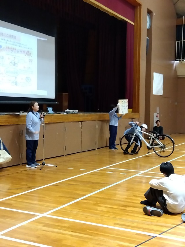 自転車の安全な活用や標識の意味なども教えていただき、バス道の交差点の注意点などのお話をしていただきました。