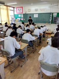 13日(火)3年生は、食育から「命」について考える授業の一環として、映画「ある精肉店のはなし」に出ておられる北田さんにお話を聞きました。命をいただいて自分たちは生きていることや仕事に誇りを持っておられることを学びました。