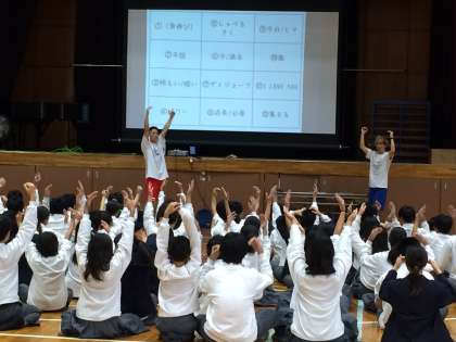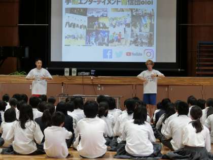 1年生は、障害理解学習として、手話エンターメント発信団oioiの方に来て頂き、出会い学習をしました。聴覚障害を持つ方もそうでない方も共に、手話エンターメントを通して心のバリアを壊して行こうという取組をしています。「大丈夫!」という手話を教えてもらったり、目で見て気持ちを伝えることの大切さなどたくさんの事を楽しく学びました。