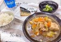 今日の献立は、飲むヨーグルト、ご飯、鶏すき、鯖の塩焼き、きゅうりのごま塩あえでし...