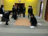 生徒会本部が、仲間に呼びかけて、3月の防災ウィークに向けて応急担架を作って実際に...