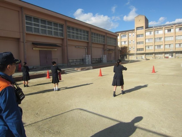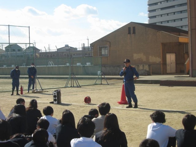 松原消防本部からも消防士の方に来ていただき、避難の様子を
