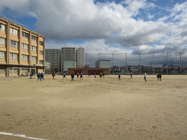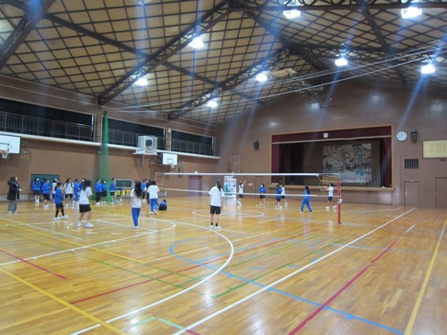 グラウンドと体育館に分かれて、サッカーとバレーボールを