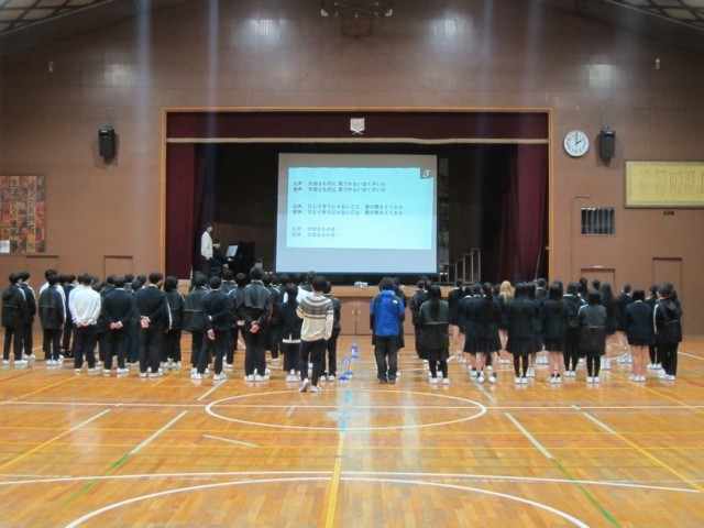 2年生が送る会に向けて合唱練習をしています。