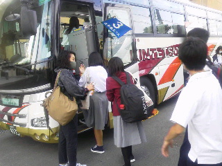 出発式も終わり、いよいよ修学旅行に出発します。みんな元気です。