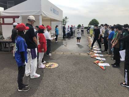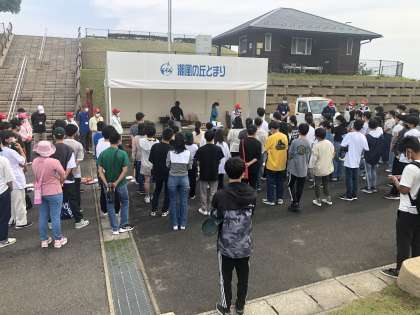 潮風の丘とまりに到着しました。ここはグランドゴルフの発祥の地だそうです。午前中は七中の貸切です。