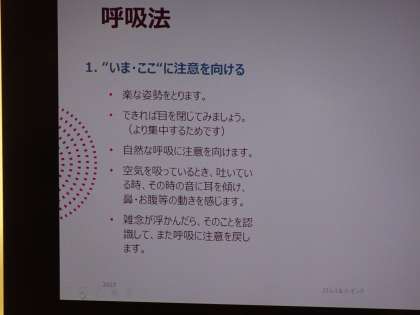 呼吸法、弛緩法 など自分で対処する方法もあれば、相談するという対処方法もあることを学びました。