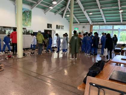それぞれの体験場所に移動しています。