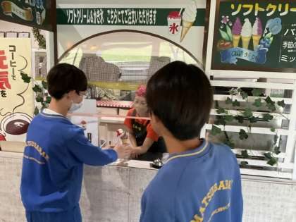 体験から帰ってきて、甘いもの アイス、かき氷 を食べています。美味しそうです。