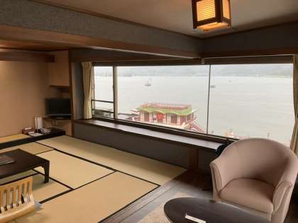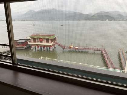 全バス 無事にホテルに到着しました。大きな窓から湖が見えて絶景です。