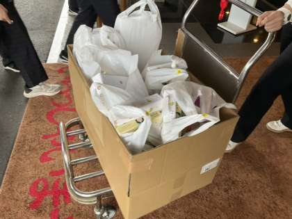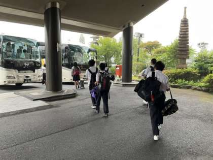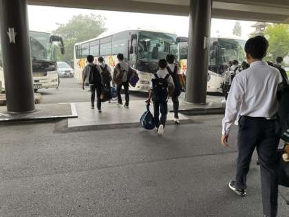 バスに荷物を運び、出発準備できました。旅行支援の岡山みやげも積まれました。何が入っているのか楽しみです。