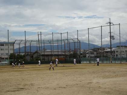 野球部は、四中、五中と合同練習を行っていました。練習が終わり、グランド整備をていねいに行っていました。